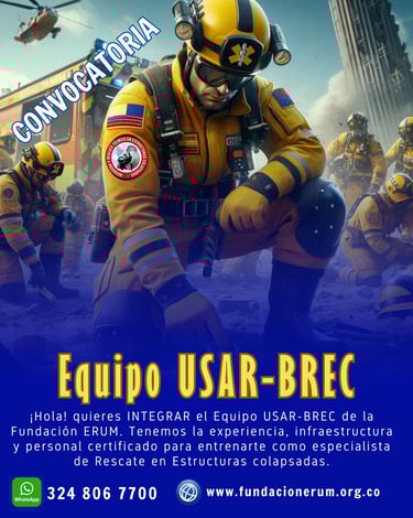 USAR-BREC (Urban Search and Rescue - Búsqueda y Rescate en Estructuras Colapsadas) es una especialización que se enfoca en la búsqueda y rescate de personas atrapadas en estructuras colapsadas después de un desastre. Los equipos USAR-BREC (Búsqueda y Rescate en Estructuras Colapsadas) de Rescate Colombia operan en los siguientes tipos de desastres, priorizando escenarios donde la vida de las personas está en riesgo debido al colapso de estructuras o atrapamiento: