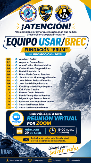🚨 Equipo USAR/BREC Fundación ERUM – Promoción III 2026 🚨