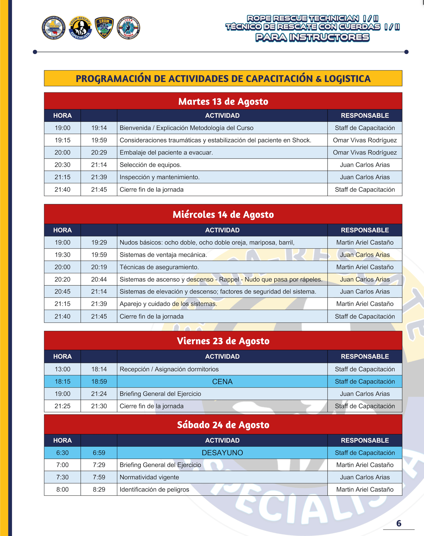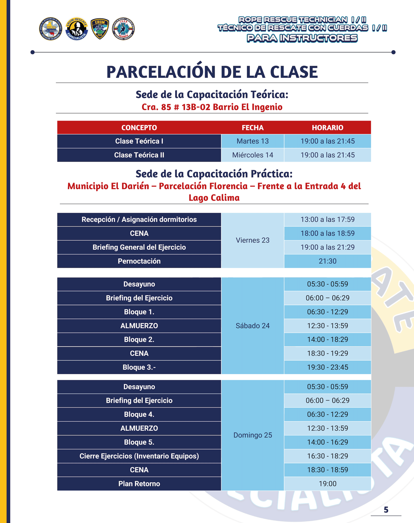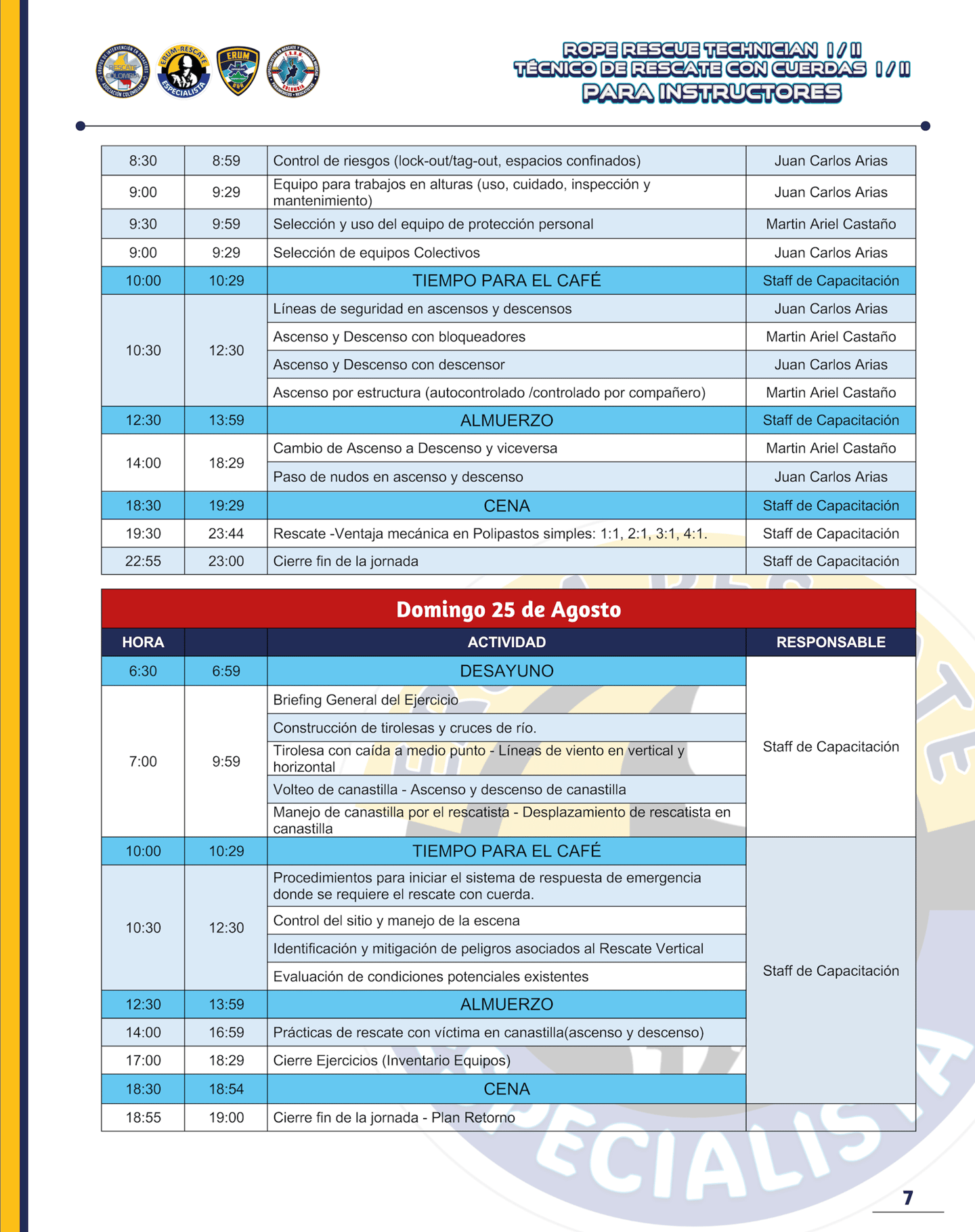 El Curso de Formación de Instructores de Rope Rescue Technician I/II - Técnico de Rescate con Cuerdas I/II implementado por Rescate Colombia y la Fundación ERUM, ofrece una clase intensiva de rescate en ángulos altos de 55 horas y reconoce 25 horas de auto preparación, para un total de 80 horas, que enseña las habilidades requeridas por los equipos de rescate de montaña.