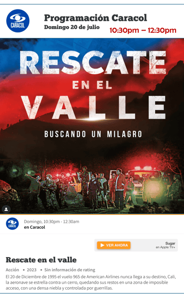 Miércoles 20 de Diciembre de 1995. Cali se viste de fiesta para celebrar la Navidad y el comienzo de la Feria. El vuelo 965 de American Airlines proveniente de Miami, en el que viajan 155 pasajeros y 8 tripulantes, está programado para aterrizar hacia las 9:30 pm; pero una cadena de errores de navegación hacen que nunca llegue a su destino. La aeronave se estrella contra un cerro, quedando sus restos en una zona de imposible acceso, con una densa niebla y controlada por guerrillas.