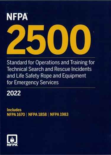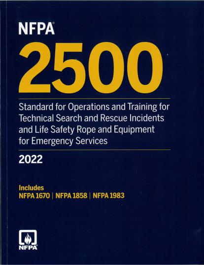 NFPA 2500, Norma para operaciones y capacitación para incidentes técnicos de búsqueda y rescate y cuerdas y equipos de seguridad para servicios de emergencia, edición 2022.